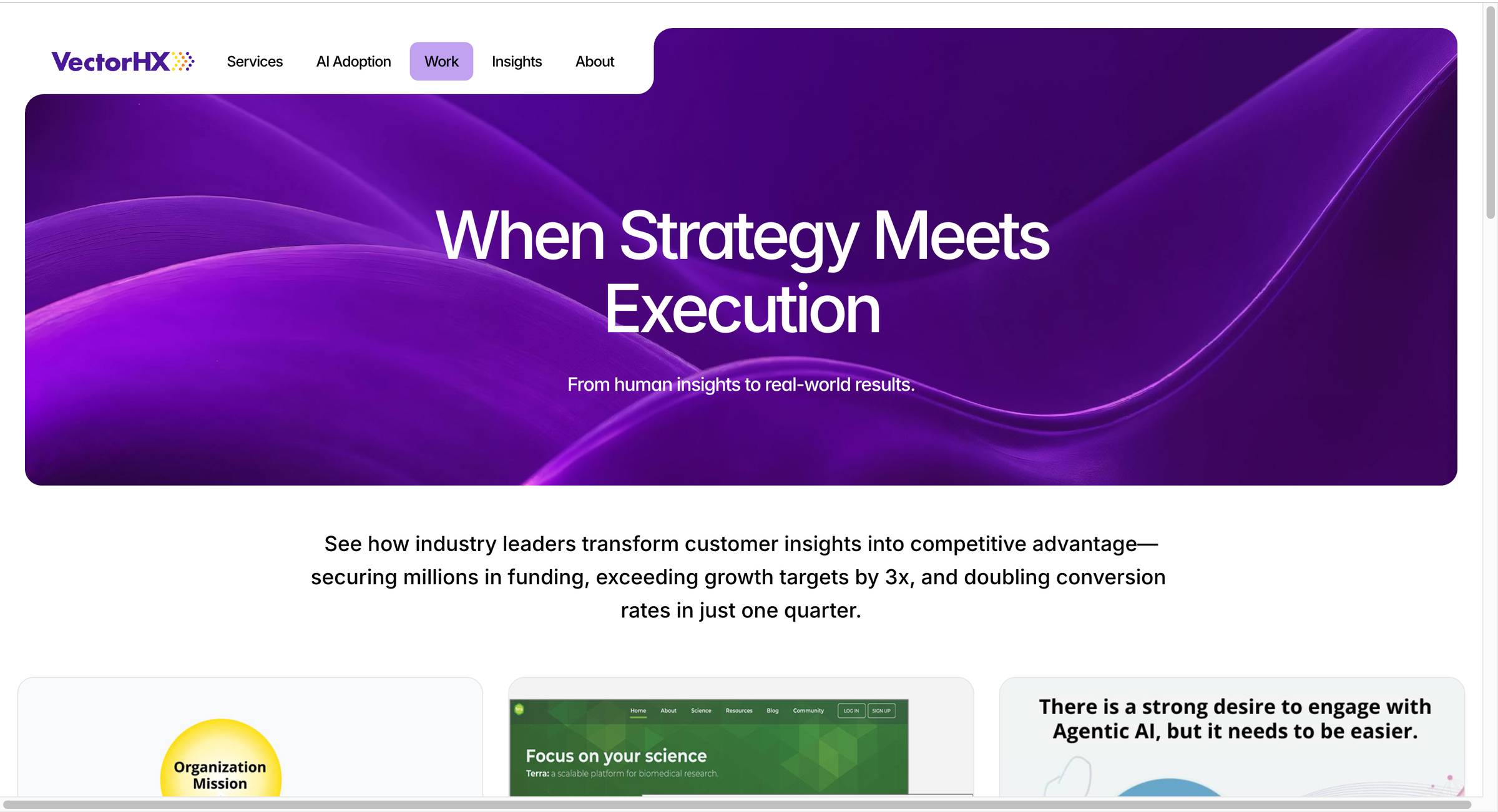 Hi Reader, You know I love a good collaboration, and today I’m celebrating one that deserves the spotlight. I recently worked with Eric Karofsky of VectorHX on the messaging for his newly launched case study page—and it’s officially live. 🎉 Here it is if you want to take a peek: https://www.vectorhx.com/work What I love most about this project is how Eric and I approached it on two levels: The meta level: telling the overarching story of his work—how he helps teams translate complexity into clarity across AI adoption, UX strategy, and digital product design. The zoomed-in level: crafting language that invites readers to dig into individual case studies and see precisely how he transforms big, technical challenges into measurable results. The result? A page that shows his expertise without overwhelming anyone with jargon. It’s smart, clean, and compelling—perfect for the technically minded decision-makers he serves. And perfect for you, too. If you’re a business owner whose work is complex, technical, or tough to explain, a well-crafted case study page isn’t optional—it’s a credibility engine. And with the right story strategy behind it, it can also become a magnet for the clients you most want to work with. If your work lives in the land of “it depends,” “it’s complicated,” or “how much time do you have?” let’s talk about creating the same kind of clarity around your work. 📆 Schedule a clarity call here. Onward and upward, P.S. If this example sparks ideas—or questions—I recommend starting with my free guide, The Top 10 Things a Copywriter Can Write for You. It’s a clear way to see what’s working, what’s missing, and where to focus next → [Grab The Guide Here] |